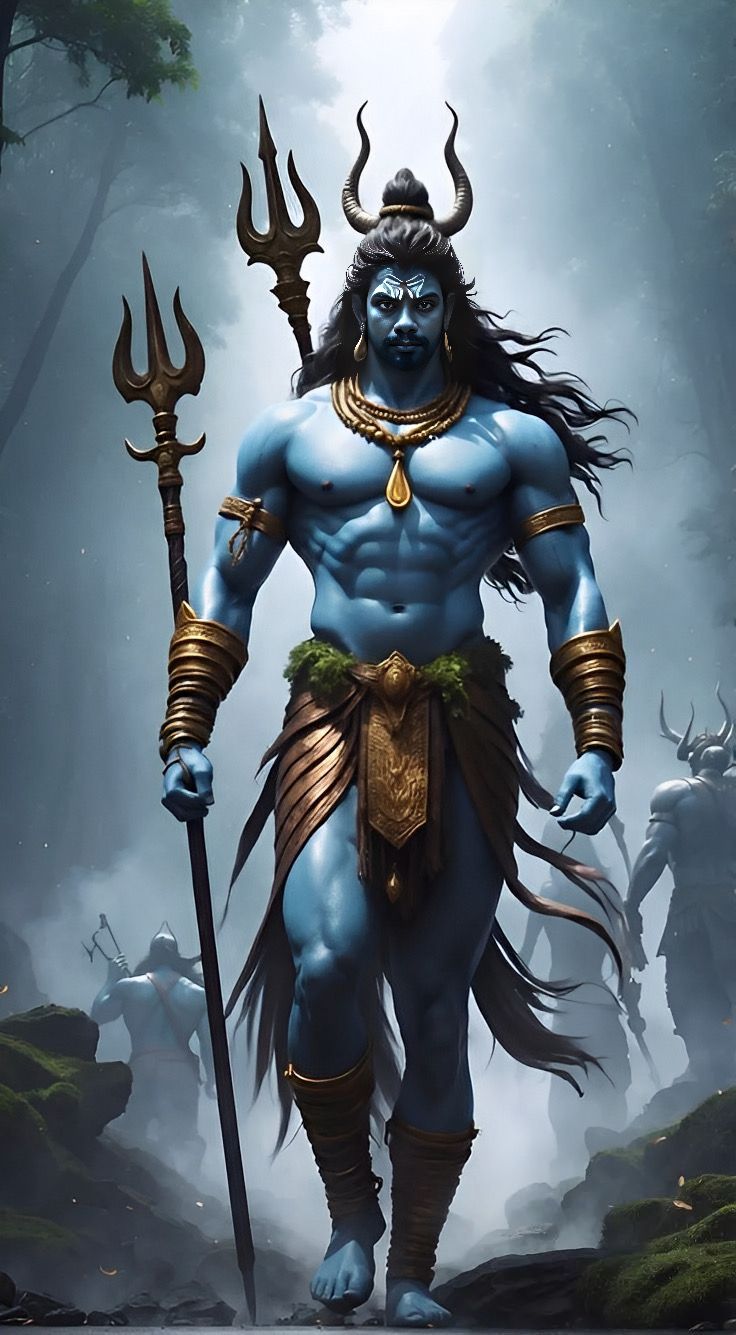 What stories does the intensity in Mahadev\'s gaze tell? This striking depiction of Bholenath, radiating shakti, embodies both power and serenity. The vibrant blue skin of Lord Shiva contrasts beautifully with the wild, untamed forest backdrop. Feel the divine energy— a reminder that even amidst chaos, there’s a stillness within. Make your phone a window to daily darshan and invite this cosmic force into your life! 🕉️✨🙏