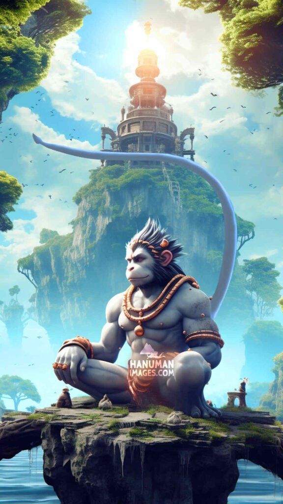 What stories does the strength in Hanuman’s gaze tell? This magnificent depiction of Pavanputra, Bajrangbali, embodies devotion and unwavering power as he seems to rise from the ocean, a mountain clutched firmly in his hands. The golden temple in the background adds a touch of the divine, creating a truly breathtaking *darshan*. Let this image fill your phone with positive energy and inspire you daily. 🙏✨🕉️