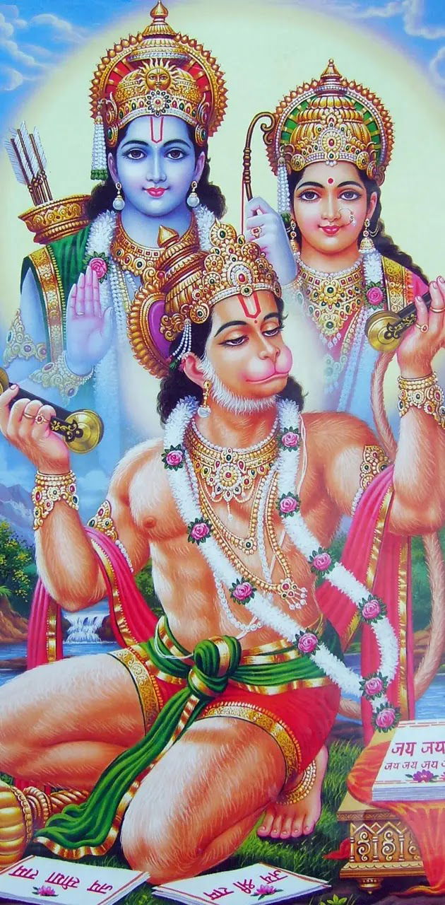 What a beautiful depiction of unwavering *bhakti*! Hanuman, the mighty Pavanputra, kneels in humble devotion before Shri Ram, Sita, and Lakshman. The artwork captures the essence of their divine relationship, a testament to loyalty and selfless service. It’s a truly auspicious image to have on your phone, reminding you of the power of devotion in your daily life. May this *darshan* bring peace and strength to your soul! 🕉️✨🙏