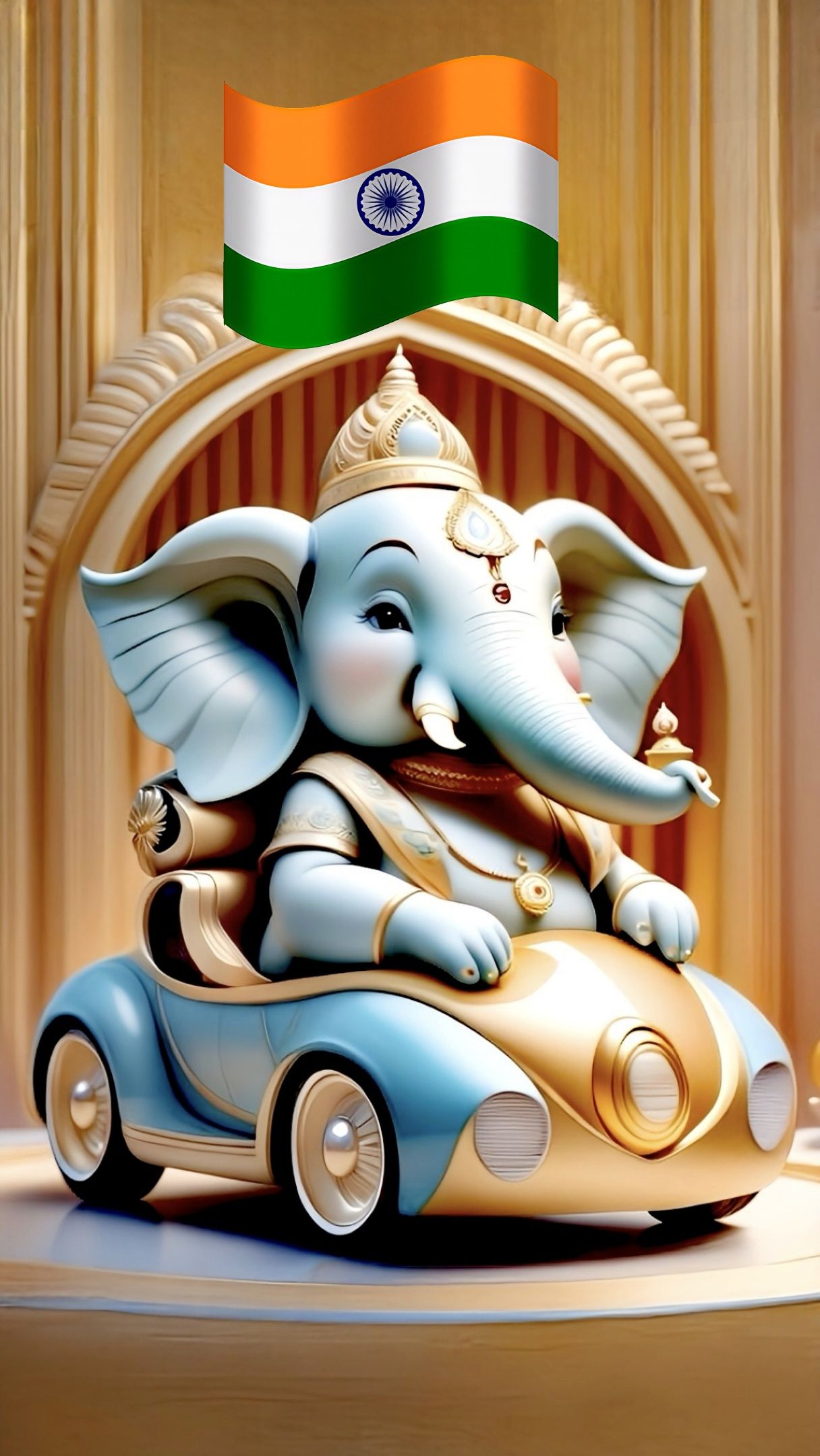 Look at little Ganpati enjoying a spirited drive! This delightful image shows our beloved Ganesha, also known as Vignaharta, taking a spin in a rather fancy car, a symbol of modern times blending seamlessly with ancient traditions. The details – from the twinkle in his eyes to the tiny mouse peeking out – are simply adorable! It\'s a beautiful *darshan* for your phone, a daily reminder of prosperity and good fortune. May this joyful image fill your day with happiness and remove all obstacles from your path. 🕉️✨🙏