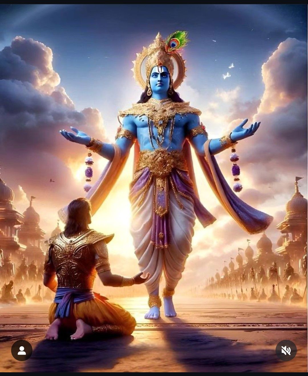 A sense of profound peace emanates from this stunning depiction of Kanhaiya, radiating divine energy upon the battlefield of Kurukshetra. Witness the moment when Murli Manohar imparts wisdom to Arjuna, revealing the secrets of the universe. The vibrant hues and intricate details bring this sacred scene to life, offering a glimpse into the heart of the Bhagavad Gita. May this image fill your days with bhakti and inspire you on your own spiritual journey. ✨ Make your phone a window to divine darshan with this beautiful wallpaper! 🕉️🙏