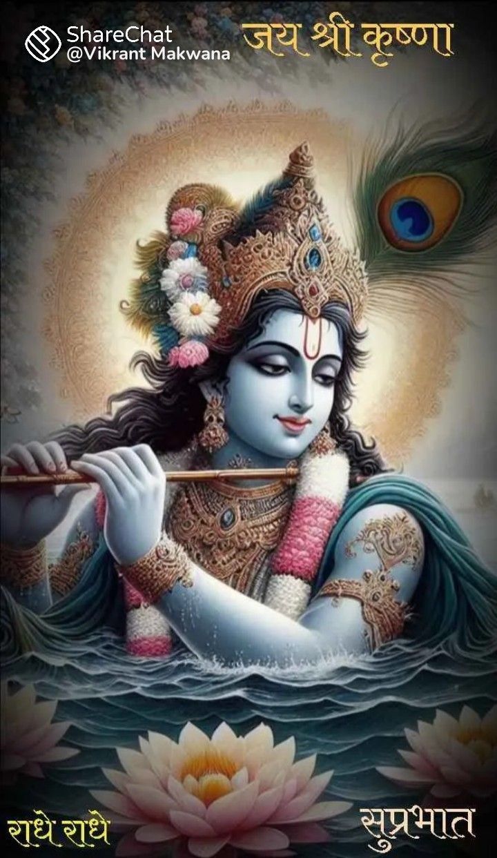 What stories does the gentle smile of Kanhaiya tell? This exquisite portrait captures the divine beauty of Lord Krishna, adorned with a peacock feather and holding his beloved flute, the bansuri. The serene expression and vibrant colors radiate bhakti and draw you into a realm of peace. Let this image be a daily reminder of Krishna’s leela and fill your phone with his divine presence. 🙏🌸✨