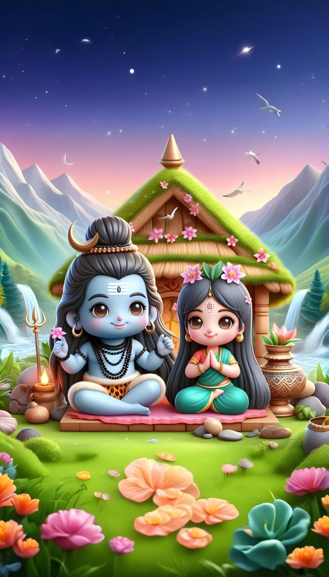 What a delightful sight! This image depicts the adorable baby forms of Mahadev and Parvati, nestled amongst lush greenery and vibrant blossoms. The little ones, radiating *shakti* and innocence, are a beautiful blessing for your phone. Their presence brings a sense of peace and divine love. The delicate details, like the tiny Trishul, add to the charm, making it a perfect backdrop for your daily *darshan*. ππΈβ¨ May this image fill your heart with joy and remind you of the boundless love of the divine family.