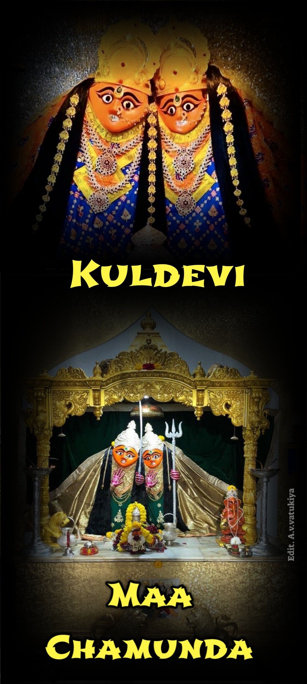 What stories do the powerful eyes of Maa Chamunda tell? π This image showcases the divine presence of Chamunda Maa, radiating strength and protection. The dual-faced deity, adorned with exquisite detail and surrounded by offerings, evokes a sense of deep reverence and bhakti. Feel the shakti of the Divine Mother watch over you, providing guidance and blessings in your life. Make your phone a portal to daily darshan! πΈβ¨