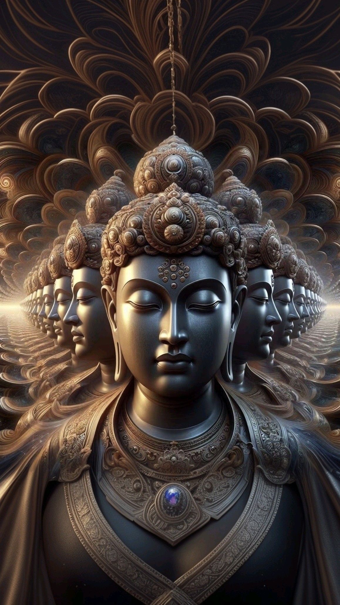 What stories do the countless faces surrounding the Tathagata reveal? This breathtaking digital artwork captures the serene essence of the Buddha, radiating peace and wisdom. The intricate details of his crown and the flowing energy behind him invite you to delve deeper into the path of *dharma*. Feel the *shakti* of enlightenment wash over you with this image, a reminder to seek inner peace in your daily life. May this be a source of constant *darshan* for your soul. 🧘✨