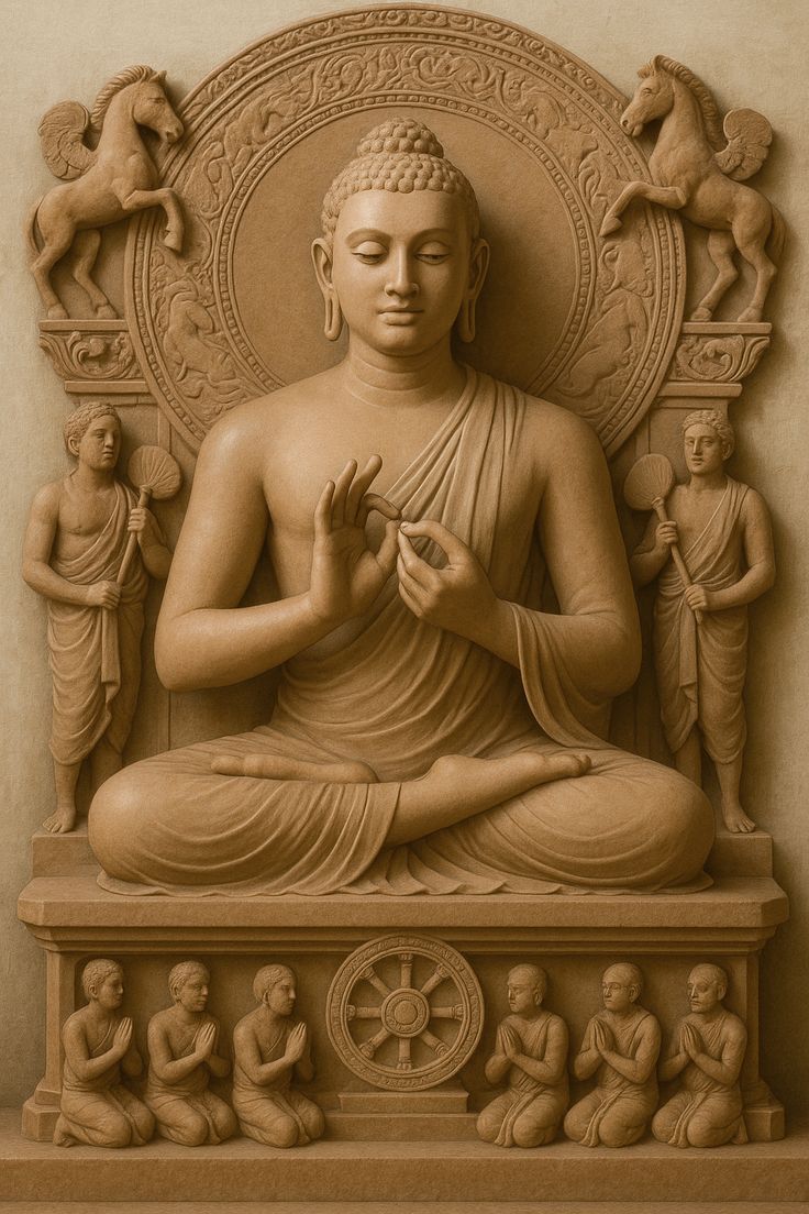 A sense of profound peace emanates from this stunning depiction of the Buddha. This sculpted image captures the serenity and wisdom of the enlightened one, his hands held in a mudra of teaching and compassion. The surrounding figures and the Dharma wheel below symbolize the path to liberation. May this image bring a moment of calm and *darshan* to your day. 🙏 Make your phone a window to spiritual bliss with this beautiful representation of the Buddha’s teachings. ✨