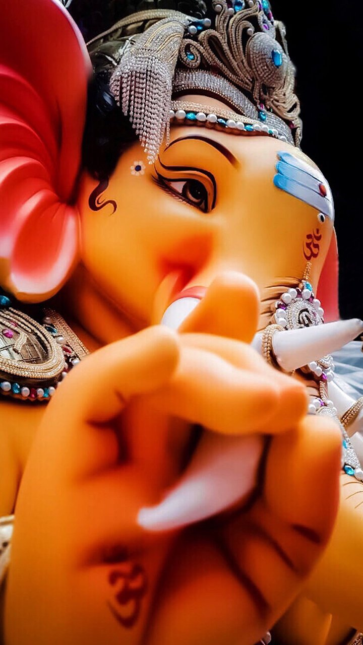 What stories are hidden within the compassionate eyes of Shri Ganesha? This stunning close-up captures the gentle power of Vighnaharta, adorned with exquisite jewelry and holding his favorite modak. Feel the blessings of Ganpati Bappa wash over you and let his wisdom guide your path. May this image bring you peace and prosperity, making your phone a window to daily darshan. 🙏✨🐘