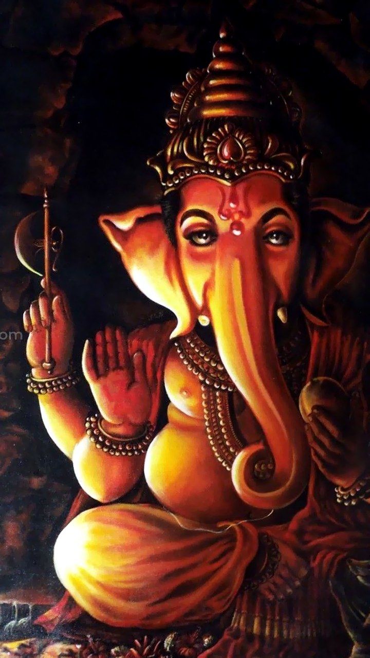 What a captivating sight! Lord Ganesha, adorned in shimmering gold, extends a hand in Abhaya Mudra, offering solace and strength. The artist\'s attention to detail—the gentle curve of the trunk, the twinkle in his eye—brings forth a sense of reverence and bhakti. Feel the divine energy of Vignaharta wash over you as you contemplate his auspicious presence. This wallpaper will bring daily darshan and positive vibes to your phone! 🕉️✨🙏