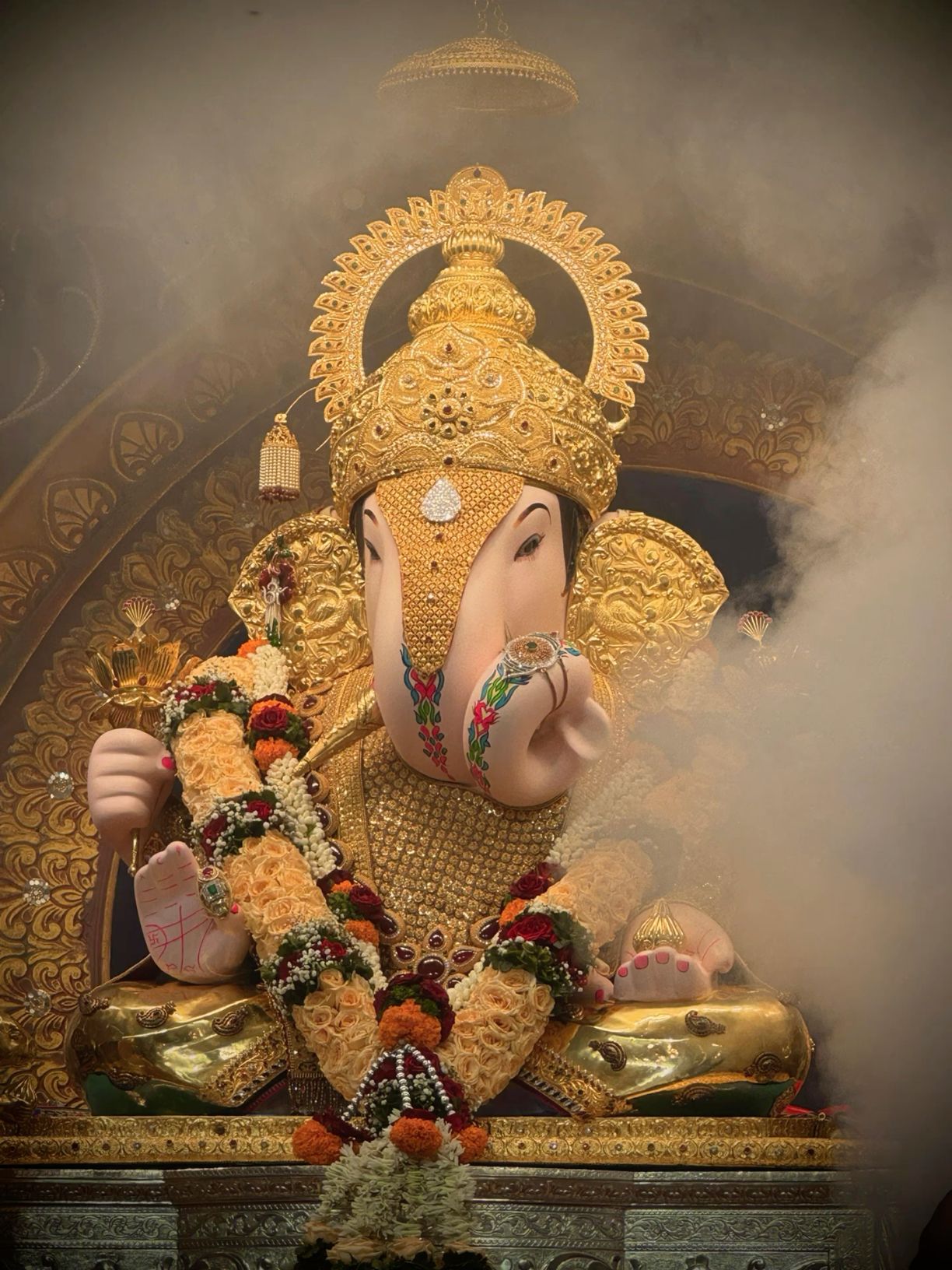 What stories do the intricate details of this magnificent Ganpati idol tell? β¨ This is a beautiful darshan of Shree Ganesha, adorned with gold and fresh flowers, radiating blessings and positive energy. The artistry is just mesmerizing, isn\'t it? It\'s a reminder of the *shakti* and wisdom our beloved Ganpati embodies. May this divine presence bring *bhakti* and prosperity into your life. Make your phone a source of daily blessings! πΈπποΈ