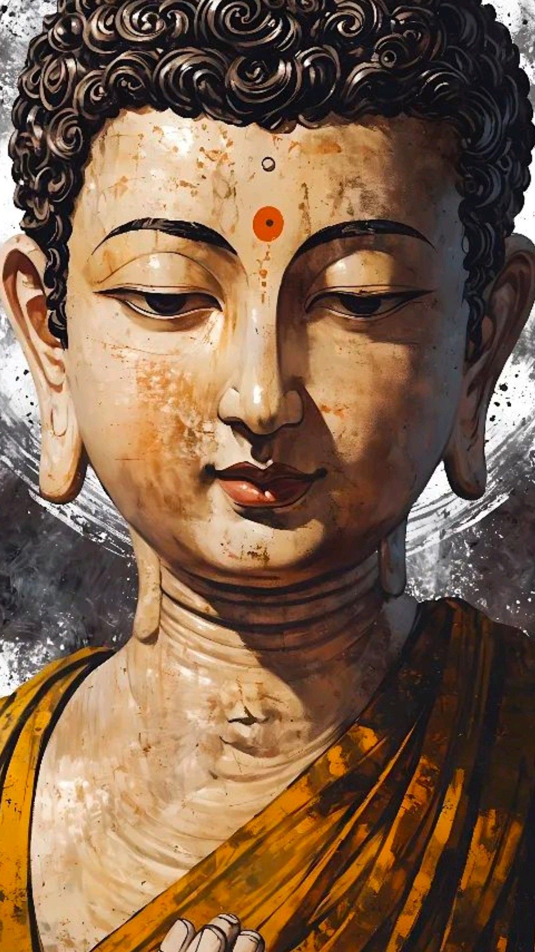 A sense of profound peace emanates from this stunning portrait of Siddhartha Gautama, the Buddha. His eyes, closed in gentle meditation, hold the wisdom of ages, inviting you to look within and discover your own inner peace. The warm golden tones and delicate brushstrokes capture the essence of enlightenment, making this image a beautiful addition to your phone. May his teachings illuminate your path. ππΈπ« Make your phone a window to daily *darshan* with this image!
