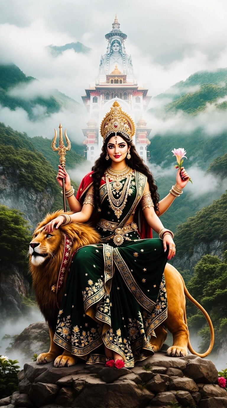 A sense of profound power emanates from this majestic depiction of Maa Vaishno Devi! Look at the intricate details in Her jewelry and the regal stance as She sits upon Her vahana, the mighty lion. Feel the shakti coursing through this image, bringing strength and blessings into your life. May Her divine presence fill your phone with peace and inspiration, reminding you of the unwavering power within. Make your phone a window to daily darshan! 🕉️✨🙏