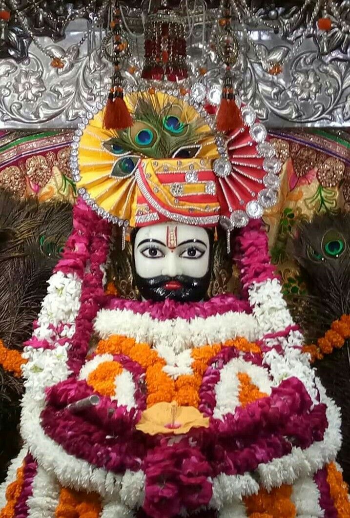 What a beautiful sight! The divine face of Ramdevpir radiates peace and strength, adorned with vibrant flowers and majestic peacock feathers. This close-up allows you to truly experience the *shakti* and grace of this beloved saint. Feel the divine energy wash over you as you gaze upon his serene expression. Let this image bring a moment of peace to your day and remind you of the boundless blessings available to us all. Make your phone a window to daily *darshan* with this blessed wallpaper! πΈπβ¨