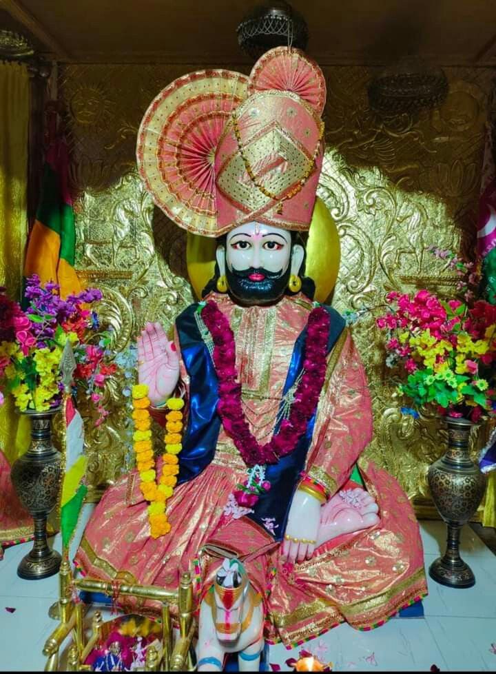 What a captivating *darshan* of Ramdevpir! The intricate details of the deity\'s crown, radiating with shades of pink and gold, draw you in. This image captures the divine presence with incredible clarity. It’s a beautiful reminder of the blessings and guidance Ramdevpir offers his devotees. May this image fill your phone with *shakti* and inspire daily devotion. 🙏🌺✨