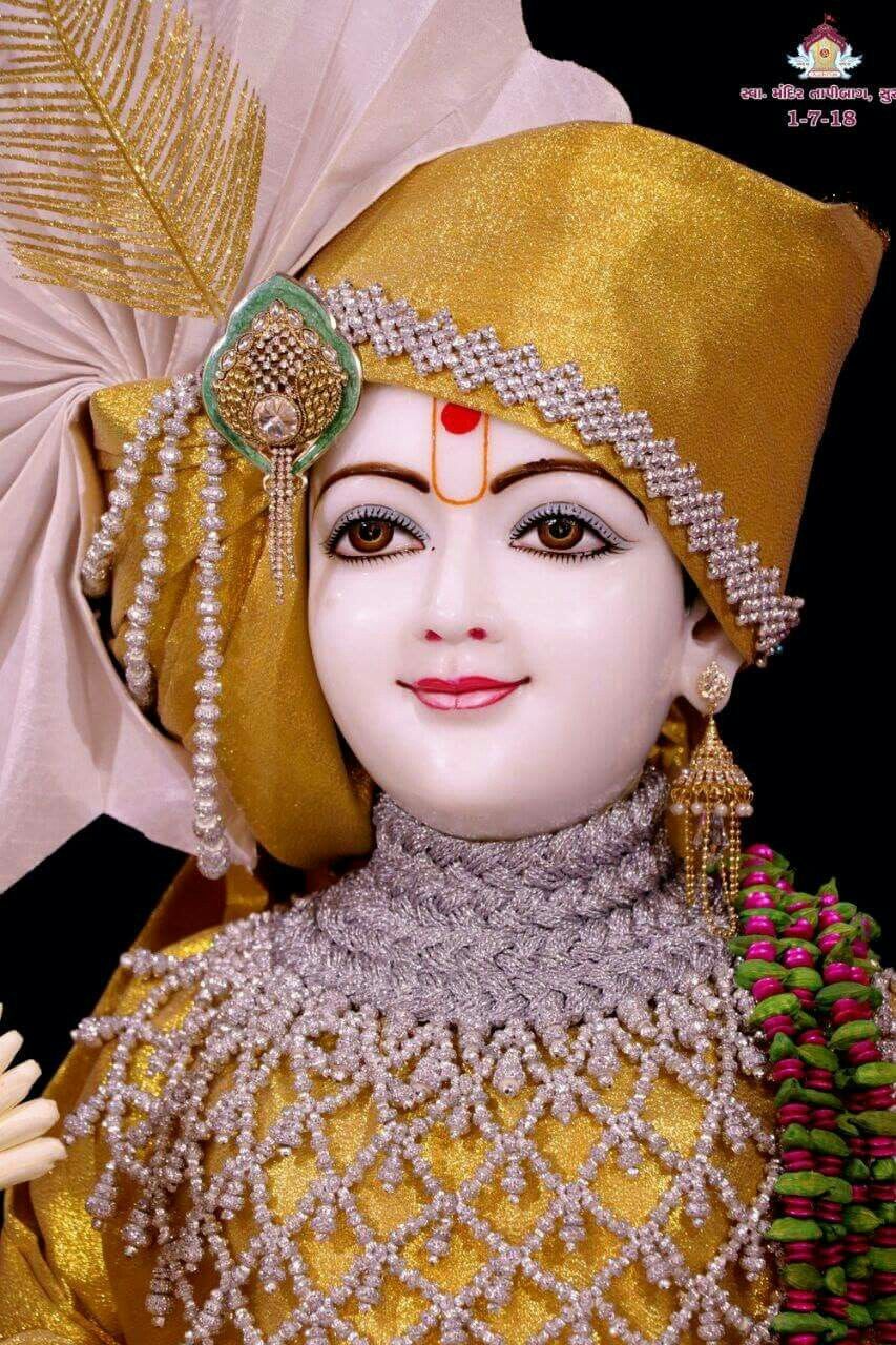 What a captivating glimpse into the divine grace of Swaminarayan! ✨ The intricate gold jewelry and delicate floral garland adorning His form speak volumes of devotion. You can almost feel the peaceful energy emanating from His eyes – a beacon of spiritual guidance for all seekers. 🙏 Allow this beautiful darshan to fill your day with peace and bliss. 💖 Make your phone a window to the divine with this beautiful wallpaper!