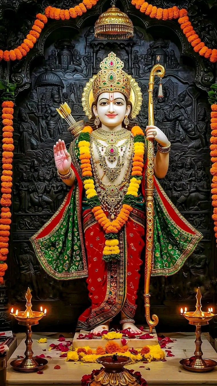 What a mesmerizing darshan of Shri Ram! The intricate details of this marble statue, adorned with fragrant marigolds and a vibrant red dhoti, truly capture the grace and strength of the Maryada Purushottam. The way He holds his Dhanush, ever-ready to uphold Dharma, fills the heart with bhakti. You can almost feel the divine shakti radiating from this sacred image. May this be a source of daily darshan and blessings for you! ππΈβ¨