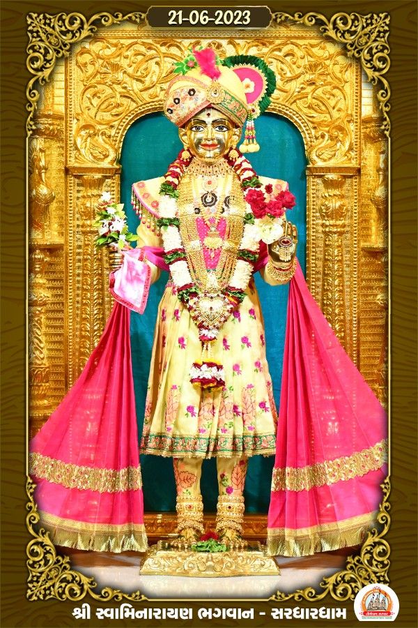 What a mesmerizing darshan of Swaminarayan Bhagwan! The intricate details in this depiction, from the delicate floral arrangements to the shimmering gold ornamentation, truly capture the divine presence. You can almost feel the peace and serenity radiating from the image. Let this beautiful representation of Swaminarayan grace your phone and inspire moments of devotion throughout your day. 🙏✨🌺 Let the blessings of Swaminarayan fill your life with joy and bhakti!💖