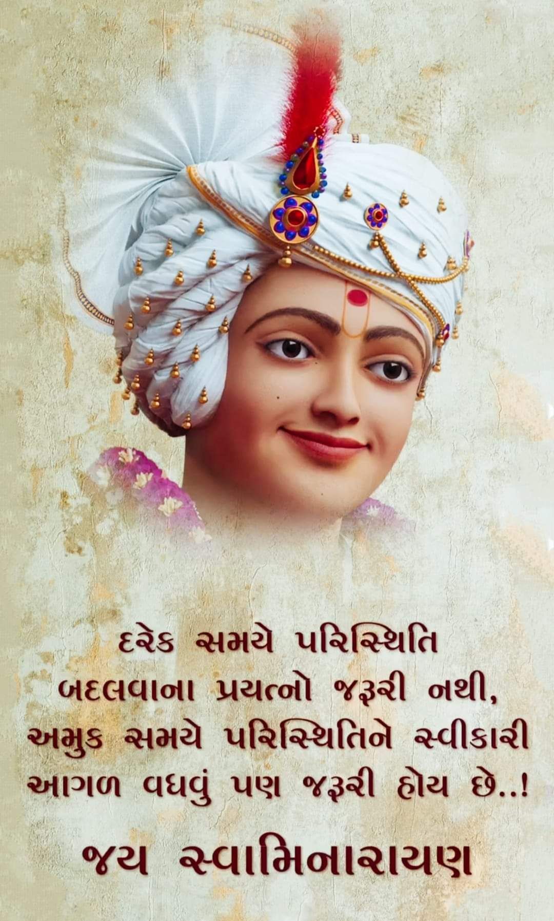 A gentle smile radiates from Swaminarayan\'s face, inviting you into a moment of peaceful contemplation. The intricate details of his turban and attire speak to the rich traditions of devotion. May his blessings fill your life with joy and serenity. Embrace the present moment with grace, just as Swaminarayan exemplifies. 🙏✨ Jay Swaminarayan! 🌸