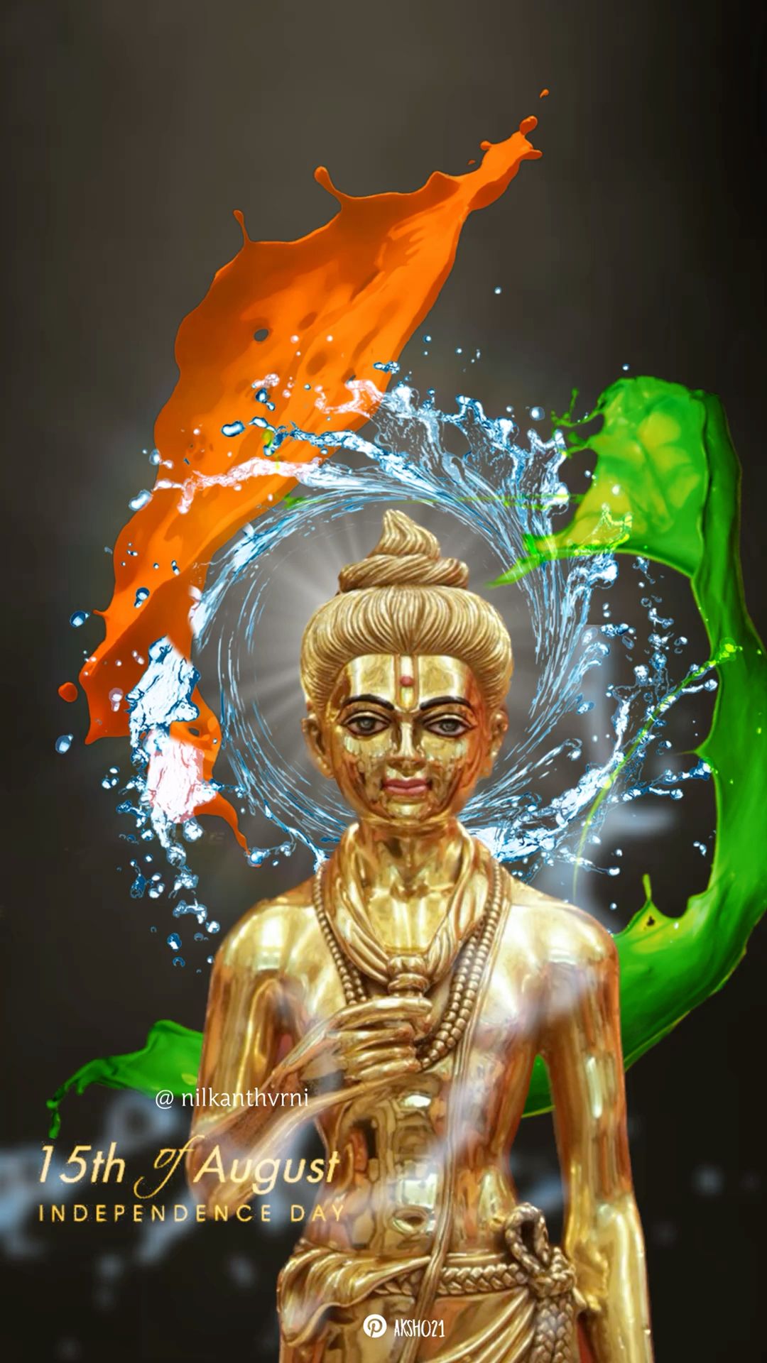 A wave of patriotic energy washes over this divine image of Swaminarayan! ✨ The golden radiance of Shri Swaminarayan Bhagwan shines brightly, beautifully framed by the vibrant colors of the Indian Tricolor. It\'s a beautiful depiction of devotion and national pride, a reminder that spirituality and patriotism can coexist harmoniously. May this image fill your heart with bhakti and a renewed sense of national unity! 🙏 Make your phone a source of daily darshan with this auspicious depiction! 🇮🇳