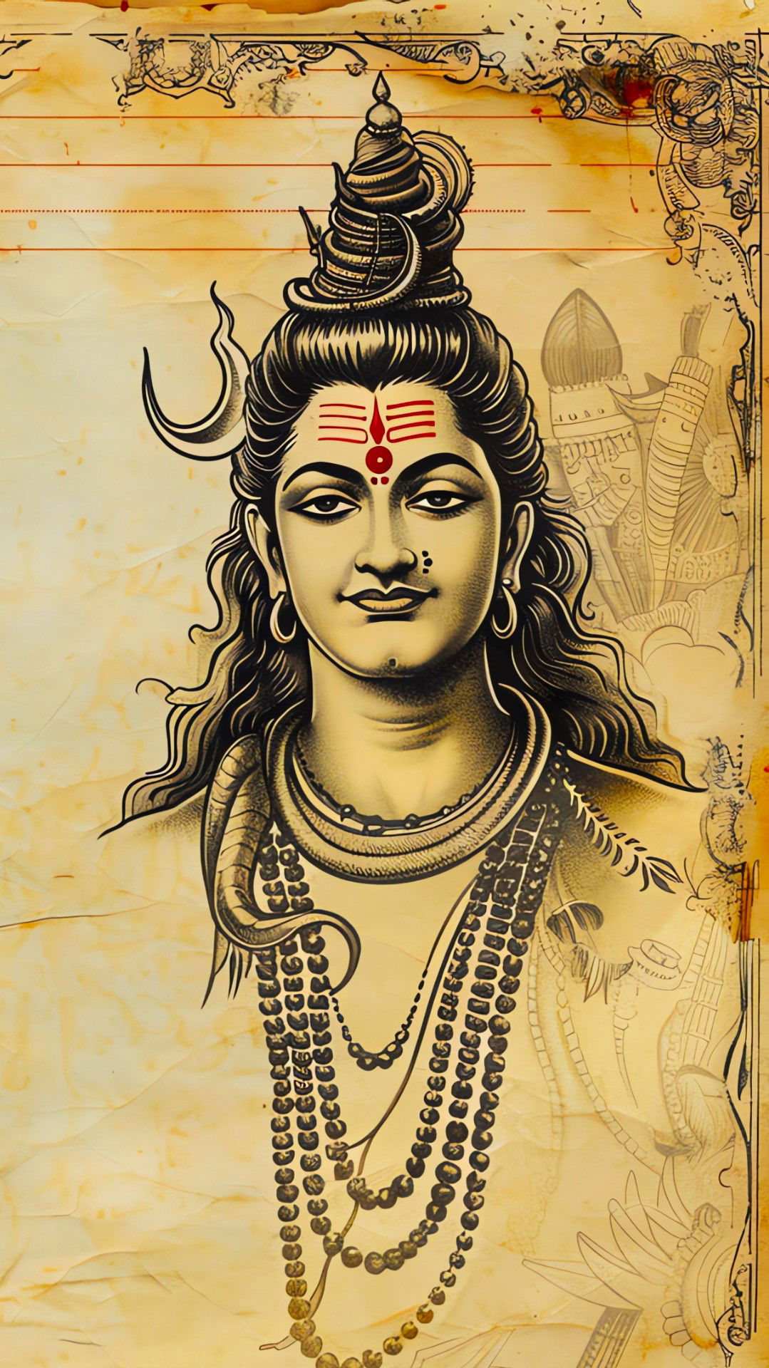 What stories does the serene gaze of Mahadev tell? This captivating artwork portrays Lord Shiva, the destroyer and transformer, in a state of profound peace. The intricate details, from the sacred ash smeared across his forehead to the coiled serpent around his neck, speak volumes about his divine power and ascetic lifestyle. 🙏🏼 Allow the energy of Bholenath to fill your day and bring a sense of calm into your life. Make your phone a window to daily *darshan* with this beautiful image! 🕉️✨