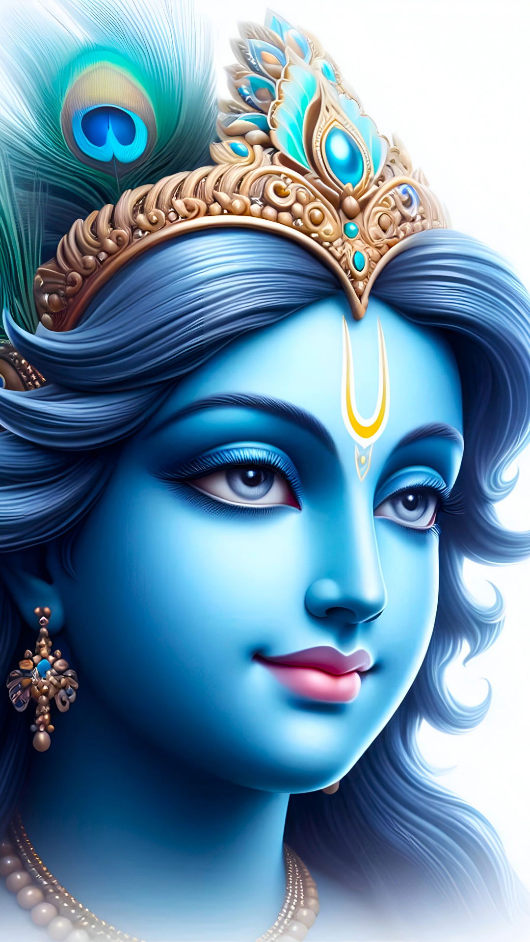 A sense of profound peace emanates from this breathtaking portrait of Kanhaiya. Look closely at the delicate details of the crown and the captivating sparkle in his eyes - a window to his divine leela. The soft hues of blue and the vibrant peacock feather evoke a feeling of bhakti, reminding you of the love and grace of Murli Manohar. Let this image fill your phone with divine energy, offering daily darshan and inspiring a deeper connection to the divine.✨🙏💖