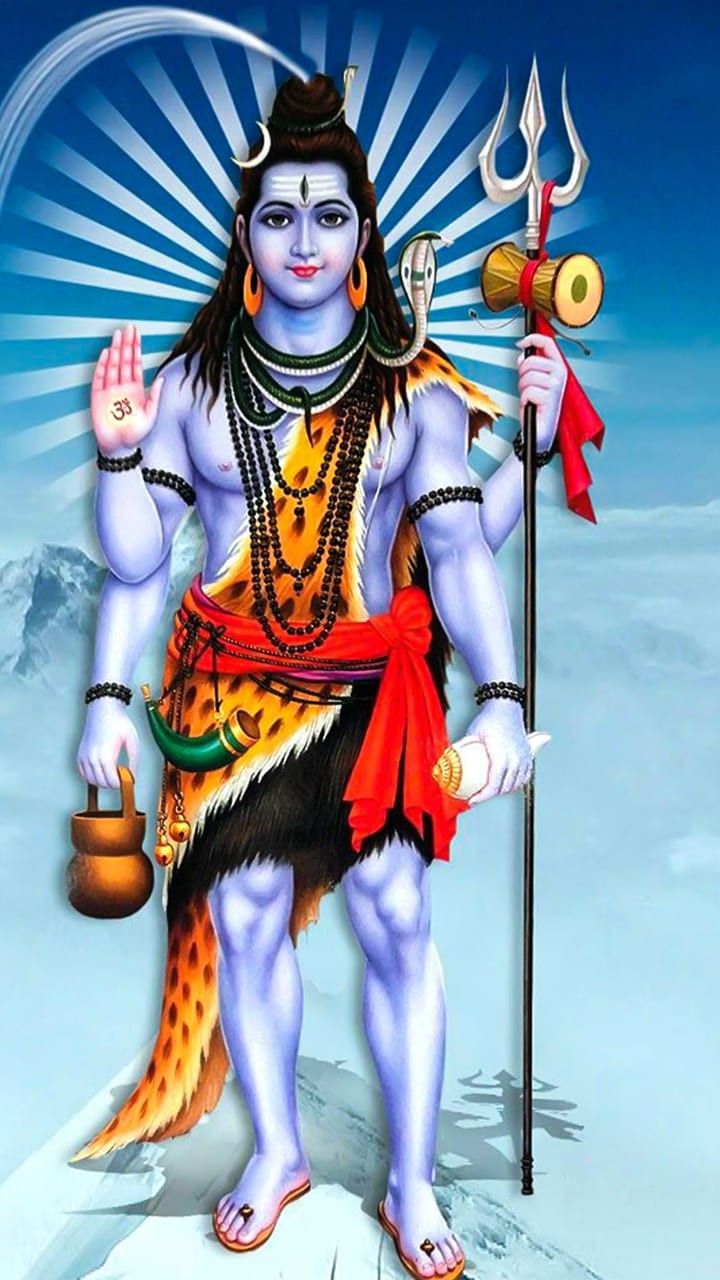 What stories does the steady gaze of Bholenath tell? This captivating image portrays Mahadev, radiant in blue, holding his sacred trident and damru. The mountains rise around him, a testament to his power and serenity. Feel the divine *shakti* emanating from this beautiful depiction, and let it fill your day with *bhakti*. May this image be a source of daily *darshan* for you. 🕉️🙏✨