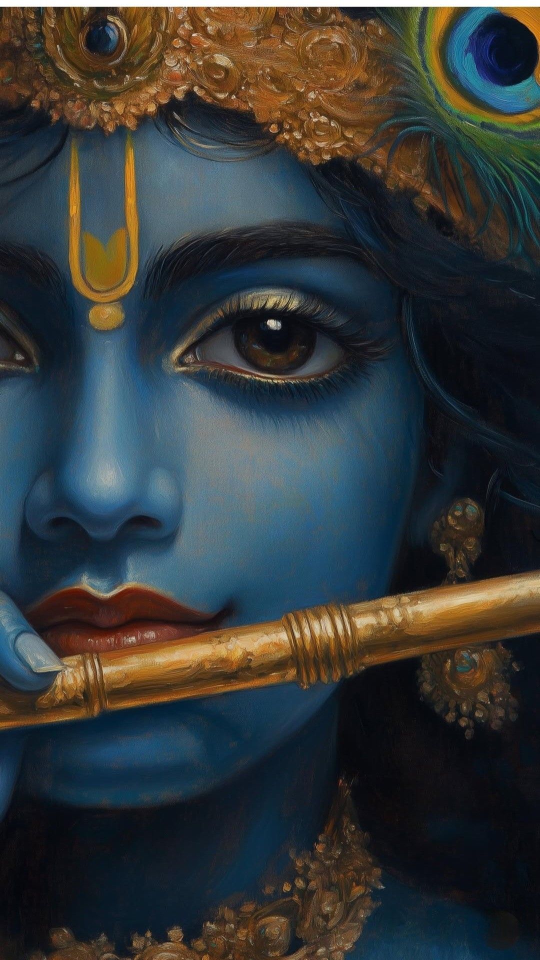A sense of profound peace emanates from this captivating portrait of Kanhaiya. The gentle curve of Krishna\'s flute, poised at his lips, hints at the divine melodies he shares with the world. The vibrant blue of his skin, a signature of his leela, draws you into a realm of bhakti. Feel the energy of Murli Manohar filling your heart and let this image be your daily darshan, a reminder of the divine presence. ✨🕉️🙏