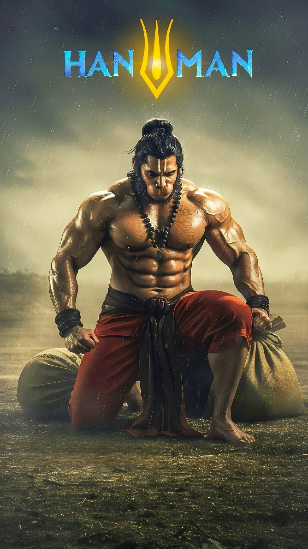 A surge of *shakti* flows through this powerful depiction of Hanuman! Look at the detail in every sinew, every strand of hair – truly a testament to his unwavering devotion to Ram. The rain seems to amplify his strength, doesn\'t it? This image of Pavanputra is a reminder of courage, selflessness, and the power of *bhakti*. May his divine energy inspire you every day, bringing peace and strength to your spirit. Make your phone a window to daily *darshan* with this incredible wallpaper! 🕉️💪✨
