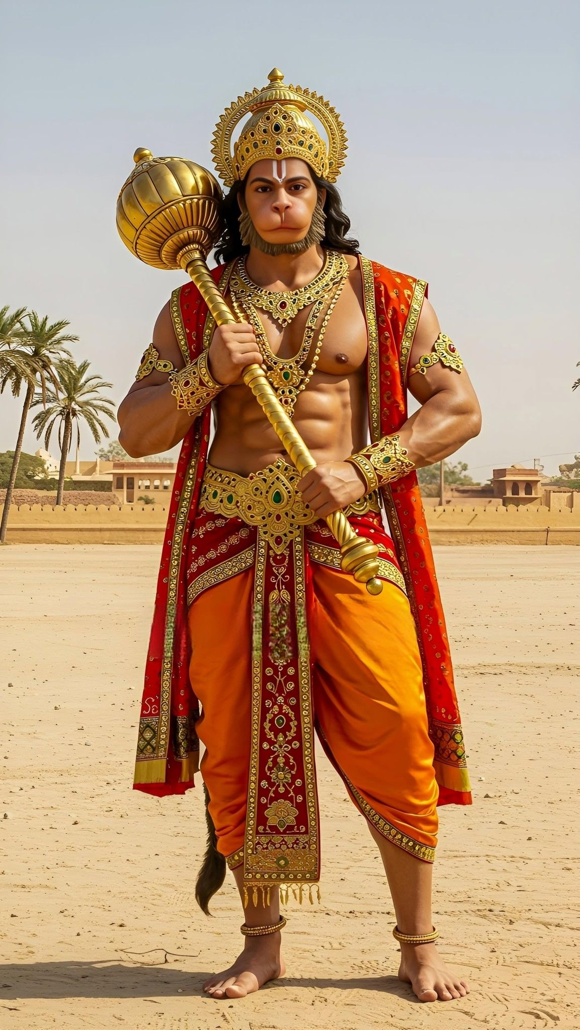 A sense of unwavering strength emanates from this magnificent depiction of Hanumanji! Look at the intricate details of his *gada*, a symbol of his devotion and power. Pavanputra stands tall, ready to assist wherever dharma needs him. This image is a reminder of the *shakti* within each of us. May this be a daily source of *darshan* for you, filling your life with courage and peace! 🙏✨🧡