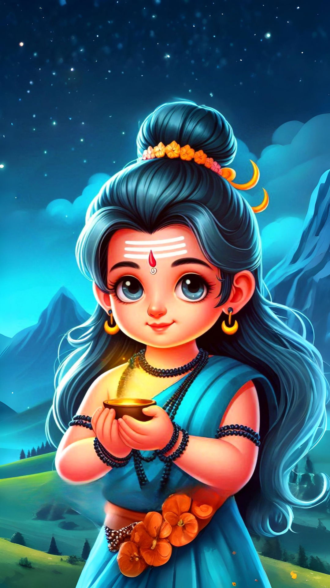 Look at this delightful image of the Divine Mother, Parvati! β¨ A sweet and innocent depiction captures the Goddess as a charming child, holding a diya that illuminates the night. Her eyes sparkle with wisdom, and her gentle smile radiates shakti. It\'s like a blessing for your phone, bringing a touch of peace and divine energy to your daily darshan. May Devi Parvati\'s grace always be with you! πΈπ