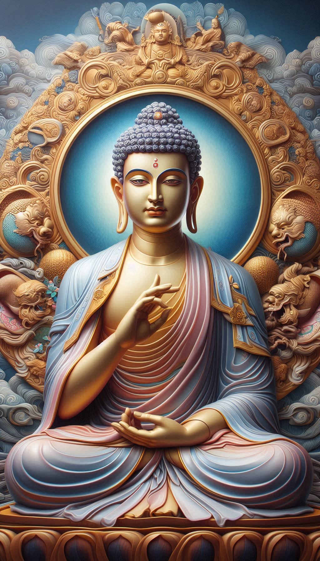 A sense of profound peace emanates from this breathtaking portrait of the Tathagata. The gentle curves of his hands, forming the dharma mudra, invite you to delve into the depths of your own inner wisdom. See the radiant glow of enlightenment within his eyes – a reminder that true liberation is within reach for all. May this image bring you a moment of calm and inspire your spiritual journey. 🙏✨ Let this be your daily *darshan*, a constant reminder of the path to nirvana. 🌟🧘