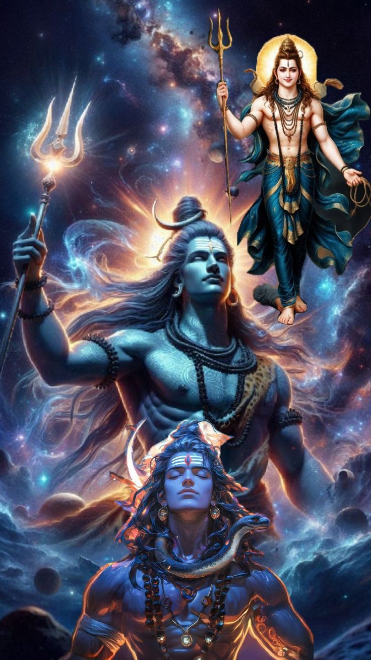 Gaze upon the infinite power of Mahadev as he emerges from the cosmos! This stunning artwork depicts Shiva in all his glory, radiating strength and serenity. The vibrant nebula swirling around him speaks of the universe’s creation and destruction, all under his divine control. Feel the shakti within this image, and let it fill your day with peace and devotion. May this darshan bring you closer to Bholenath\'s blessings! 🕉️✨🙏