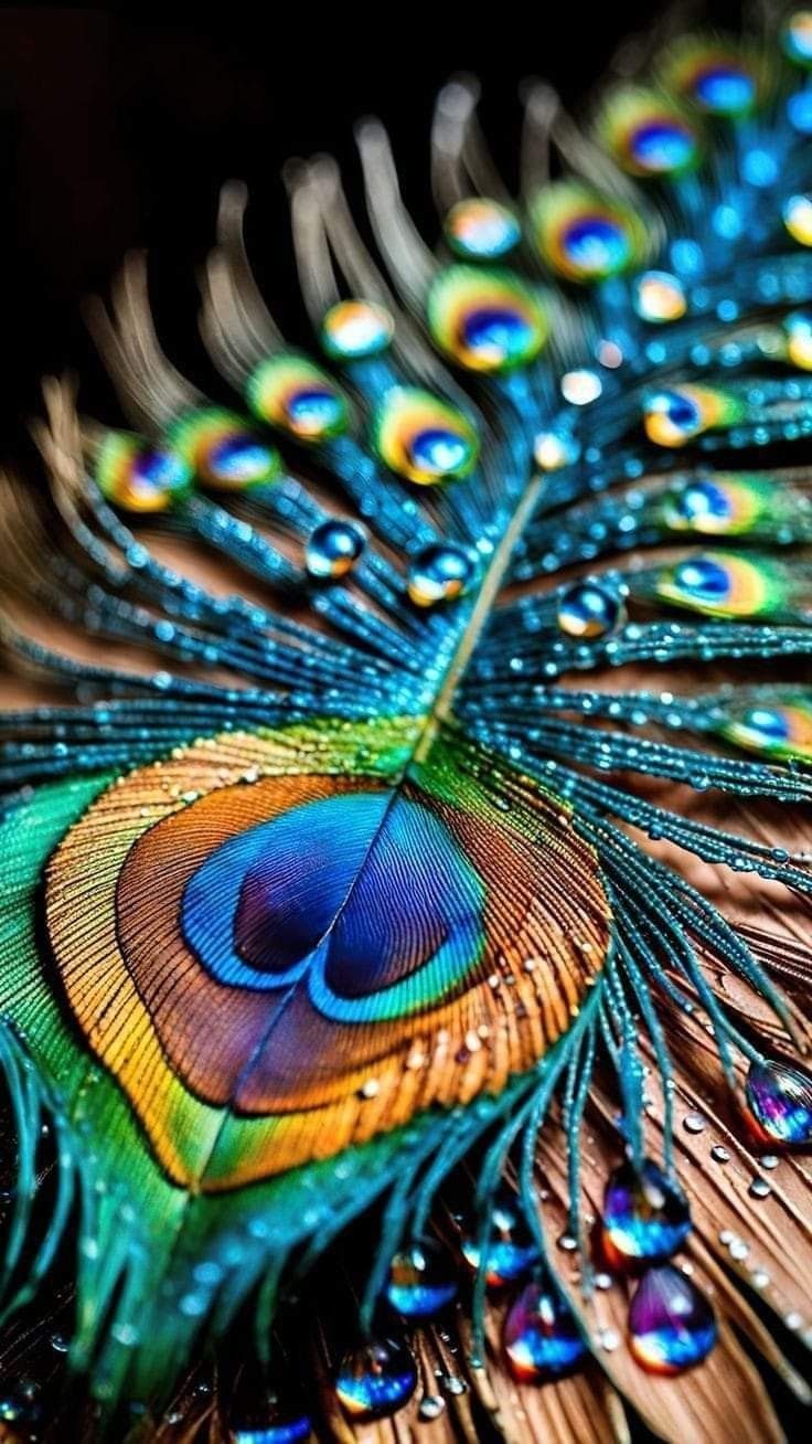 What stories do the shimmering droplets tell upon this magnificent peacock feather? β¨ The intricate details and vibrant hues of this *mor pankh* evoke a sense of divine beauty and grace. Itβs a reminder of the artistry found in nature, and the blessings that surround us. Allow this image to bring a touch of serenity to your phone, offering a daily moment of peace and *darshan*. π¦π§π