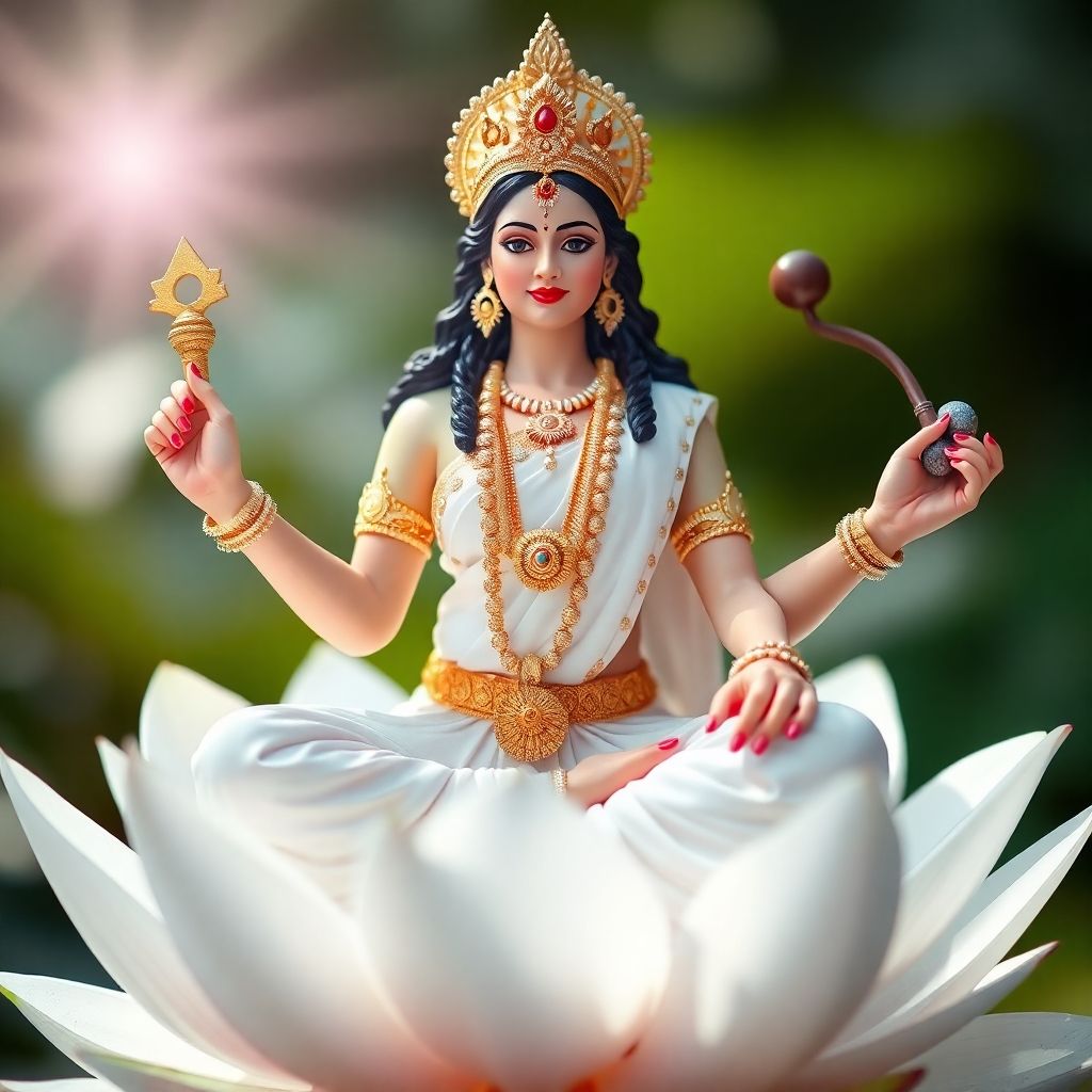 What melodies drift from Saraswati Devi’s veena in this exquisite portrayal? ✨ The goddess of knowledge and arts is depicted here in serene beauty, seated upon a pristine lotus. Her gentle gaze invites *darshan* and a deepening of your inner wisdom. It’s a lovely reminder of the *shakti* within us all! Let this divine image be a daily source of inspiration on your phone. 🙏🌸💖
