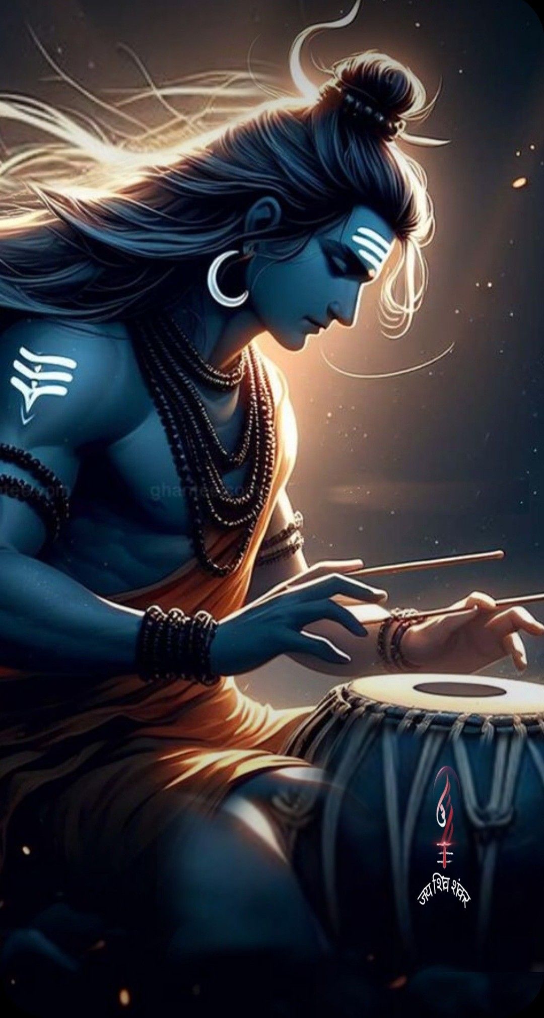 What stories does the gentle beat of Mahadev\'s damru drum whisper to your soul? This captivating image showcases the divine power and serenity of Shiva, the destroyer and transformer. The flowing locks, the sacred serpent coiled around his neck, and the intense gaze capture the essence of the great yogi. May this darshan fill your life with shakti and inspire you on your spiritual journey. 🙏 Make your phone a portal to daily blessings. ✨