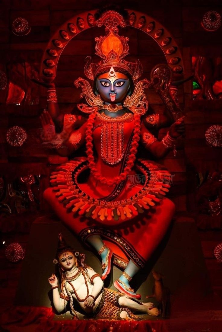 A sense of profound *shakti* radiates from this stunning depiction of Maa Kali. Look closely at the intricate details of Her many hands, each a symbol of power and protection. The deep crimson hues and the captivating gaze of the Divine Mother invoke a feeling of both awe and surrender. May this image bring a touch of Her blessings to your day, filling your life with courage and strength. Let the fierce energy of Mahakali Maa guide and empower you. 🕉️🔥✨
