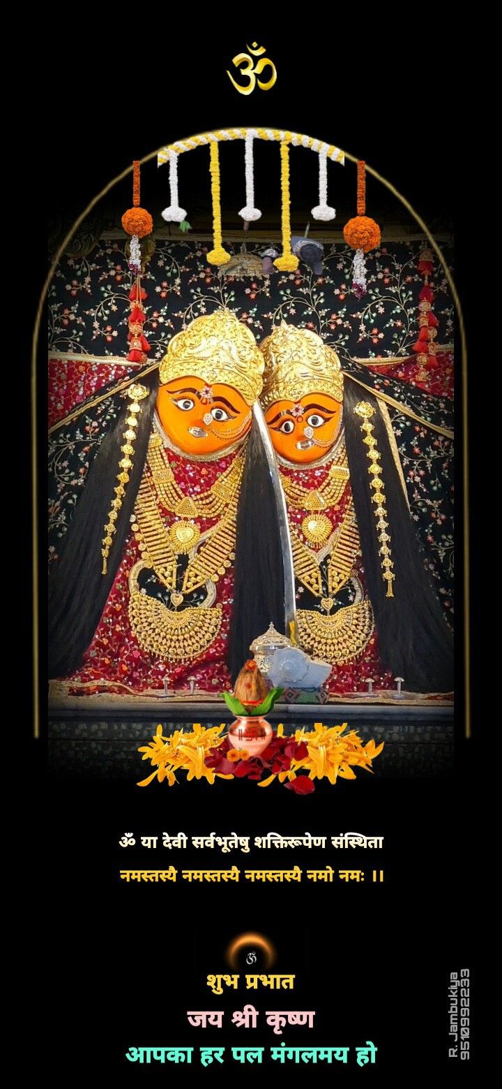 Behold the radiant presence of Chamunda Maa, adorned in exquisite golden jewelry and a vibrant garland of flowers! Her powerful gaze meets yours, offering a sense of protection and divine strength. ✨ The backdrop of a celestial sky with cascading rays accentuates her mystical aura. This image is a powerful reminder of the shakti within, and the blessings of the Devi. May her divine energy fill your life with peace and prosperity. Make your phone a source of daily darshan! 🙏💖🌸