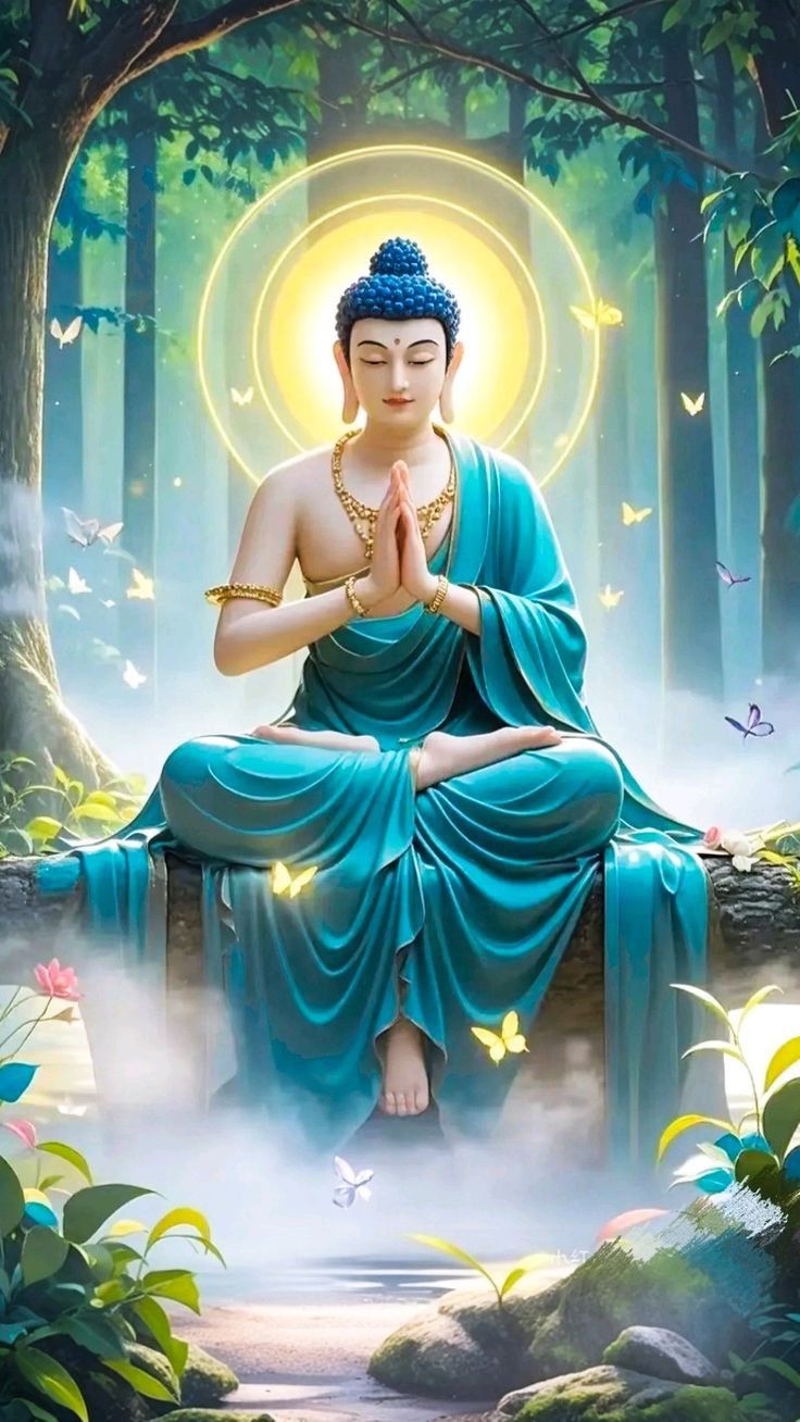 A sense of profound peace emanates from this image of Gautam Buddha, seated in serene meditation amidst a lush, vibrant forest. His hands are gently pressed together in *anjali mudra*, a gesture of reverence and prayer. The halo around his head radiates wisdom and enlightenment, while delicate butterflies dance around him β a symbol of transformation and the ephemeral nature of life. May this *darshan* fill your day with tranquility and inner peace. π§β¨πΏπ