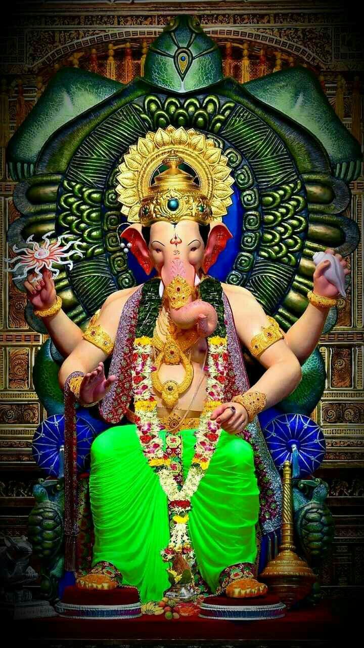 What a captivating sight! Lord Ganesha is seated regally, adorned with a magnificent crown and a garland of vibrant flowers. The emerald green robe adds to the divine aura. You can almost feel the blessings radiating from his gentle gaze. This powerful image of Vinayaka is sure to fill your phone with *shakti* and bring positivity to your day. Make your phone a window to daily *darshan* with this beautiful depiction of our beloved Ganpati Bappa! 🕉️✨🙏