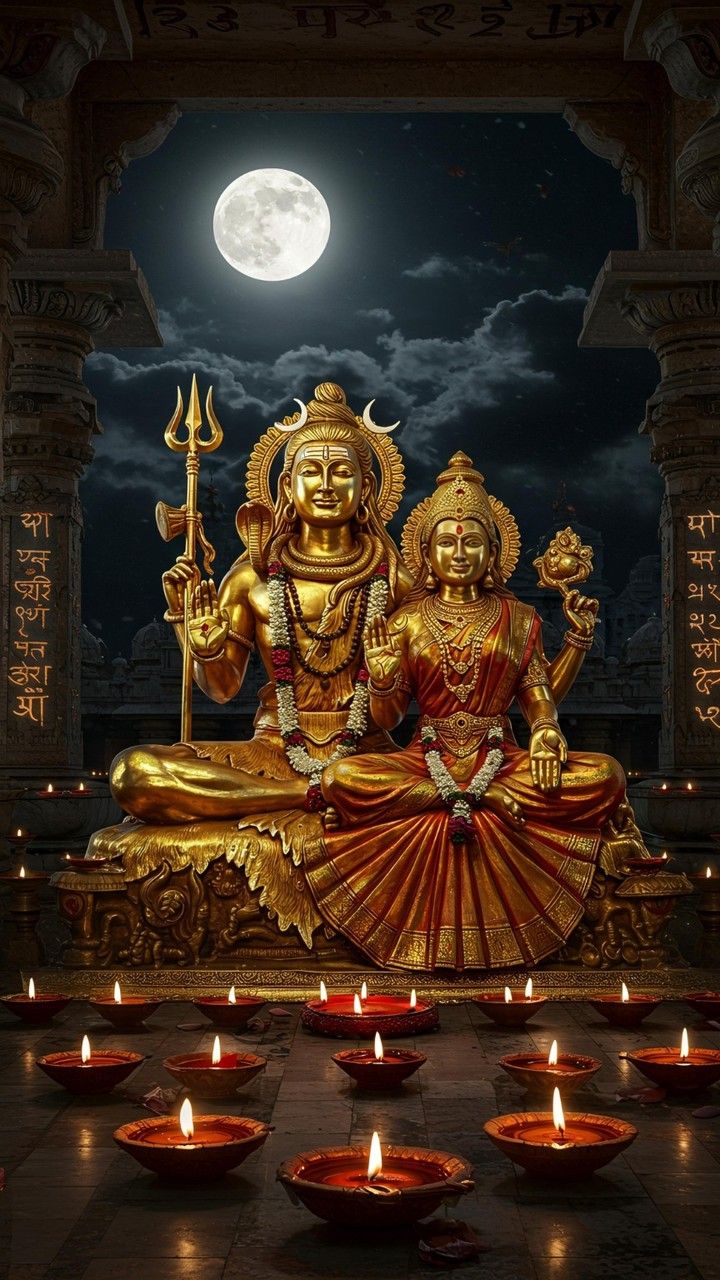 A sense of profound peace emanates from this stunning depiction of Shiv Parvati. The divine couple sits amidst a gathering of flickering diyas, bathed in the soft glow of the full moon. See how Maa Parvati’s gentle gaze meets that of Mahadev, a symbol of perfect union and unwavering *shakti*. The intricate details of their attire, combined with the ancient temple architecture, create a truly mesmerizing *darshan*. May this image bring blessings and peace into your life, and make your phone a daily source of divine connection! 🕉️✨🙏