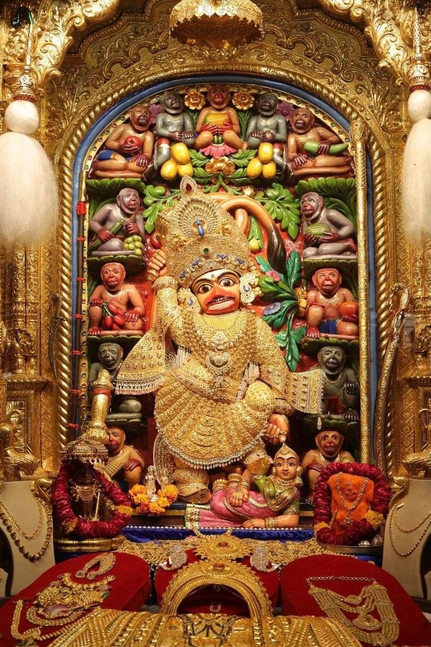 What a mesmerizing darshan of Hanumanji! This magnificent idol, radiating golden brilliance, fills the heart with bhakti. The intricate details and the vibrant colors surrounding Bajrangbali create an aura of divine energy. You can almost feel the power and devotion emanating from this sacred space. May this image bring peace and strength to your day, and may Hanumanji\'s blessings always be with you 🙏✨😇. Make your phone a window to daily divine grace!