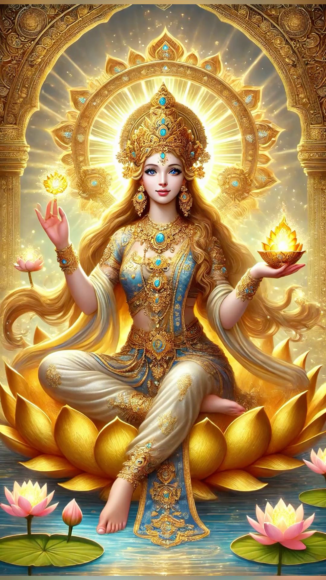 What stories does the soft glow around Lakshmi Maa tell? This stunning depiction of the Goddess of Wealth showcases her serene beauty, seated gracefully upon a blossoming lotus. The abundance of gold and jewels speaks to her prosperity and grace, a reminder that *shakti* and auspiciousness are always within reach. May this image fill your phone with positive energy and daily *darshan*. ✨🙏🕉️🌸