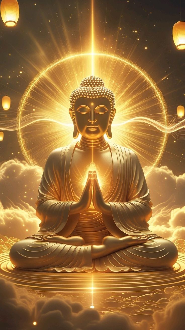 What stories does the gentle serenity in the Buddha\'s gaze tell? This image captures the Tathagata in deep meditation, radiating a golden *tejas* that washes over everything. The intricate details highlight the peace and enlightenment that come with letting go. The golden hue represents the purity of his teachings and the path to *moksha*. May this image be a source of daily *darshan* for you, reminding you of inner peace and the power of mindfulness. 🙏✨🕉️