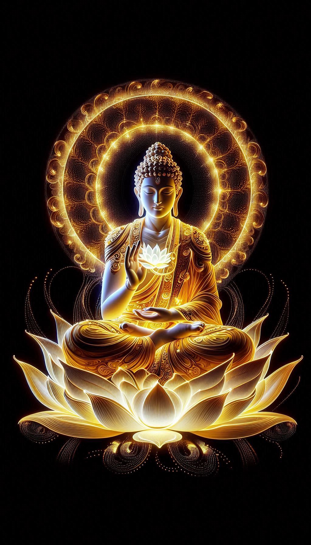 Behold the serene presence of the Tathagata, radiating peace and wisdom! This artwork captures the profound stillness of Buddha in deep meditation, surrounded by a breathtaking halo of golden light. Feel the tranquility wash over you as you contemplate the path to enlightenment. May this image bring a sense of calm and *shakti* to your day. Let this *darshan* inspire your journey towards inner peace. 🙏✨🌸 Namaste.
