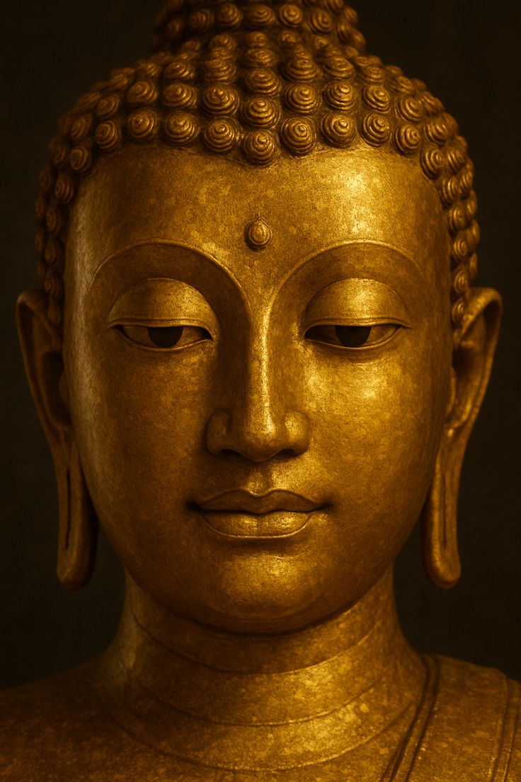 A sense of profound peace emanates from this captivating image of the Buddha. The intricate details of the golden statue, from the delicate curls of his hair to the gentle curve of his lips, draw you into a state of quiet contemplation. This is a beautiful reminder to find stillness within yourself and embrace the path to enlightenment. May this image bring you *darshan* and inspiration each day. 🙏✨😌