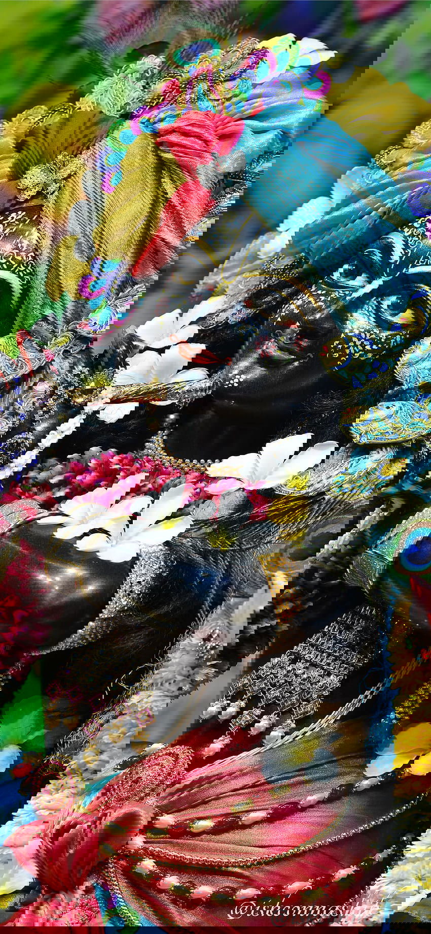 A sense of profound peace emanates from this exquisite portrait of Kanhaiya. Look at the delicate flowers adorning Murli Manohar\'s form, and the way His flute rests near His lips, promising melodies of divine love. The intricate details of His jewelry and vibrant attire speak of centuries of devotion. May this darshan fill your day with bhakti and joy! ✨🙏🌸 Allow the divine energy of Govinda to bless your phone daily.