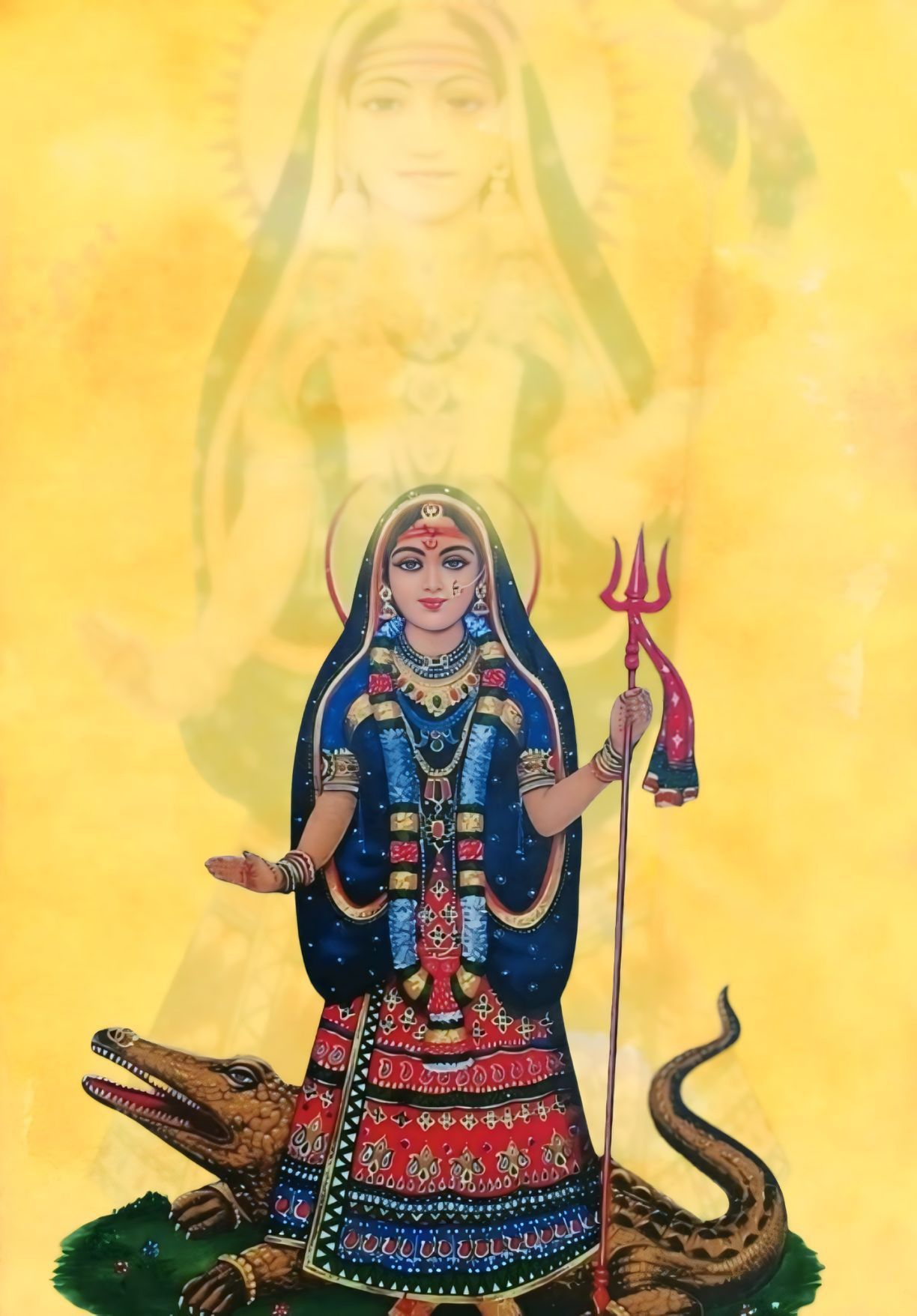 A sense of profound peace emanates from this image of Khodiyar Maa. She stands resplendent, adorned with intricate jewelry and a benevolent expression, radiating *shakti* and grace. The divine turtle beneath her feet speaks of stability and time, while the serpent signifies powerful energy. May this *darshan* bring blessings and strength to your day, filling your life with her protective aura. 🕉️🙏✨