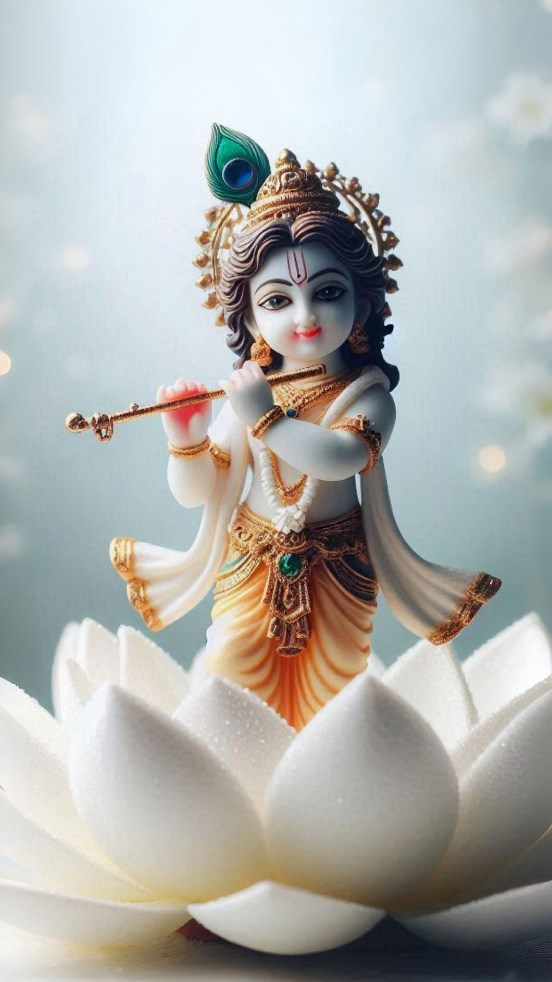 A sense of profound peace emanates from this image of little Kanha, seated gracefully on a pristine white lotus. The gentle curve of his flute hints at the enchanting melodies heβs about to play, filling your heart with *bhakti*. His mischievous eyes, sparkling with divine *leela*, draw you into a world of devotion. May this little Murli Manohar bring joy and blessings to your day, reminding you of the playful side of the divine. Make your phone a source of daily *darshan* with this adorable image! πβ¨π
