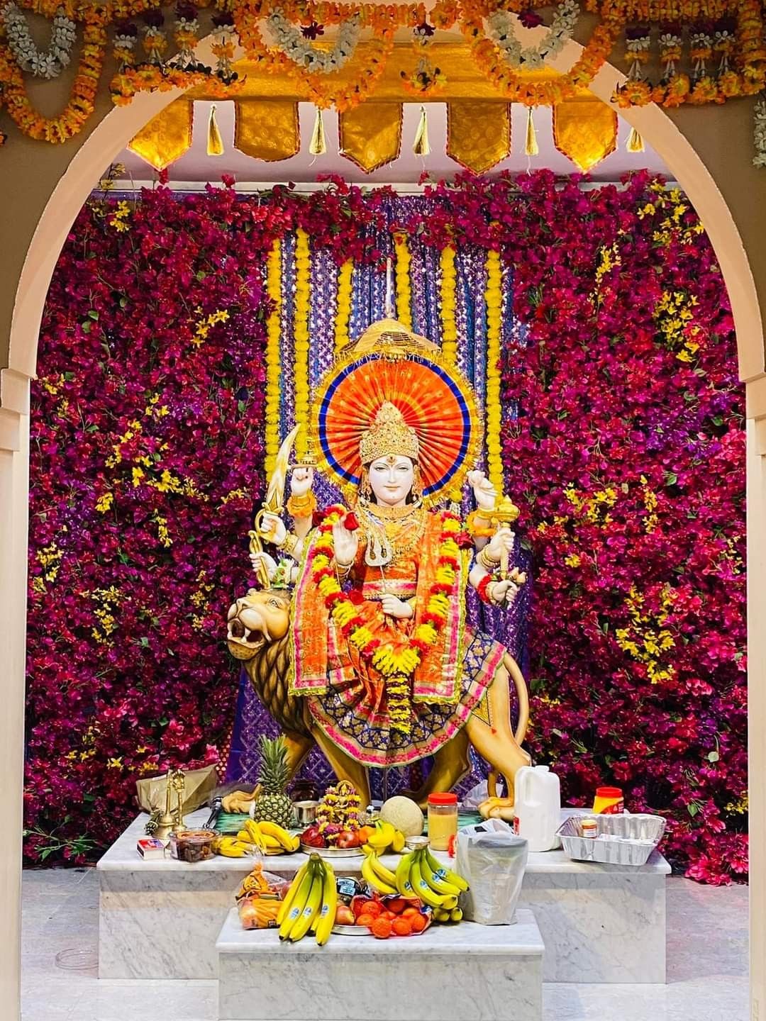What a stunning sight! Ambe Maa, radiant and powerful, graces this temple amidst a breathtaking cascade of vibrant flowers. The air seems filled with *shakti* and the sweet fragrance of devotion. This image captures the essence of *darshan*, offering a moment of peace and connection to the divine. May this beautiful vision fill your phone with blessings and inspire your day! ππΈβ¨