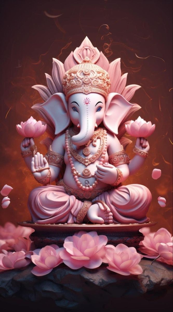 What stories do the delicate pink lotuses held by Shri Ganesha whisper? This stunning depiction of Vighnaharta, surrounded by a cascade of blossoms, radiates a feeling of peace and prosperity. His gentle gaze promises blessings and the removal of all obstacles. May this image bring *shakti* and *bhakti* into your life, filling your day with divine energy. Make your phone a source of daily *darshan* with this beautiful image. πΈποΈβ¨
