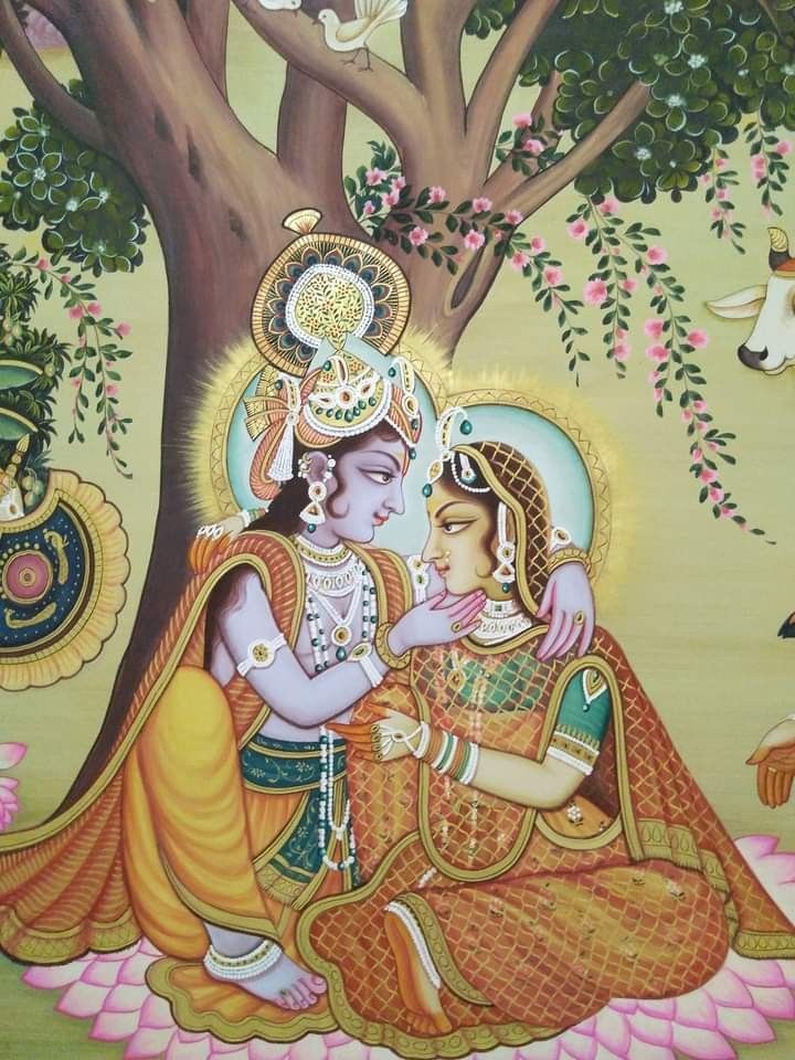 A sense of profound peace emanates from this beautiful depiction of Radha and Krishna. Look at the intricate details of their garments, the delicate lotus blossoms, and the loving gaze they share. This is Kanhaiya, lost in the bliss of *leela* with his beloved Radha, a reminder of the divine connection we all seek. May this image bring a moment of *shanti* and *bhakti* to your day, and fill your phone with divine *darshan*! πΈβ¨π